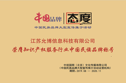 恭喜允博信息科技有限公司荣膺知识产权服务行业中国名族品牌称号以及知识产权服务行业合作伙伴